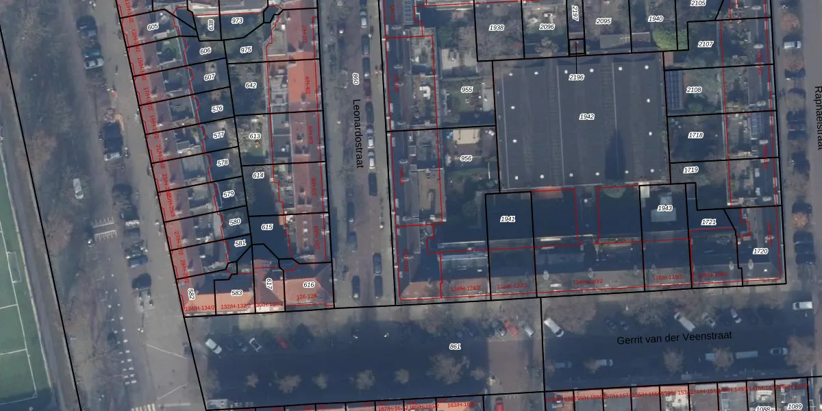 Het perceel waarop Leonardostraat 9-1 staat heeft een oppervlakte van 1040 m². Dit is een zeer groot perceel. De perceeloppervlakte wordt geregistreerd door het Kadaster. Gedetailleerde informatie over de maten van dit perceel kunt u vinden in het rapport Kadastrale kaart met maatvoering van Leonardostraat 9-1.