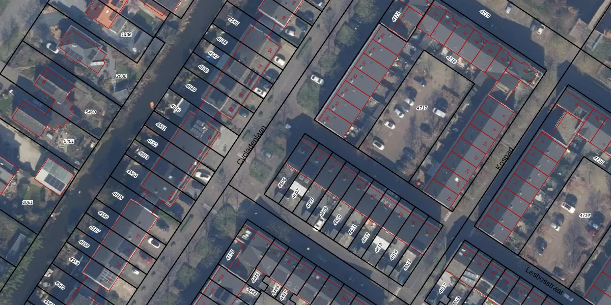Lesbosstraat 4 is gelegen op kadastraal perceel STN02G4606. Deze kadastrale aanduiding is uniek en wordt gebruikt door het Kadaster om eigendomsrechten en andere zakelijke rechten vast te leggen. Het perceel maakt onderdeel uit van de kadastrale gemeente Sloten Noord-Holland.