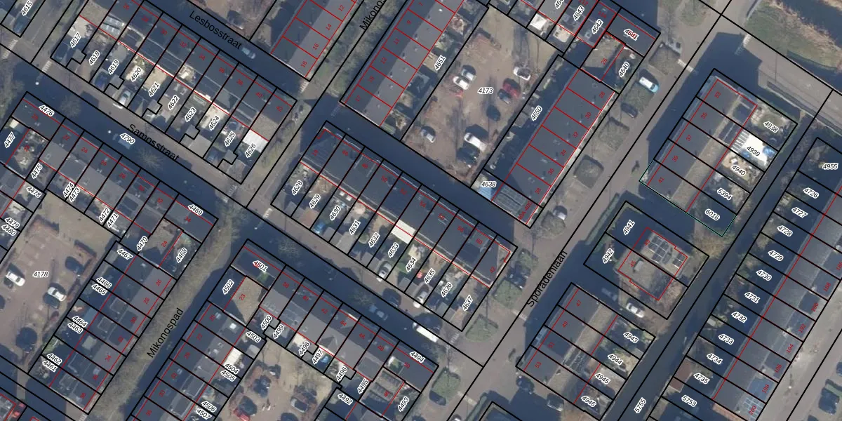 Lesbosstraat 54 is gelegen op kadastraal perceel STN02G4633. Deze kadastrale aanduiding is uniek en wordt gebruikt door het Kadaster om eigendomsrechten en andere zakelijke rechten vast te leggen. Het perceel maakt onderdeel uit van de kadastrale gemeente Sloten Noord-Holland.