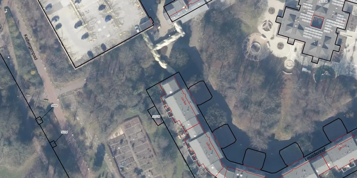 Het perceel waarop Leusdenhof 138 staat heeft een oppervlakte van 3695 m². Dit is een zeer groot perceel. De perceeloppervlakte wordt geregistreerd door het Kadaster. Gedetailleerde informatie over de maten van dit perceel kunt u vinden in het rapport Kadastrale kaart met maatvoering van Leusdenhof 138.