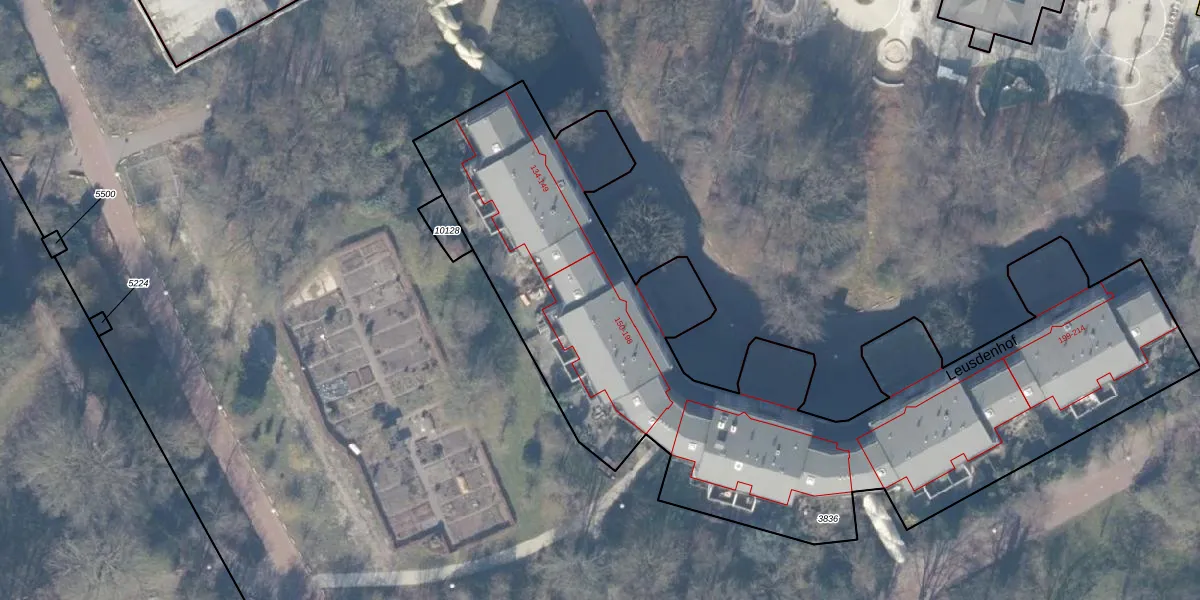 Het perceel waarop Leusdenhof 154 staat heeft een oppervlakte van 3695 m². Dit is een zeer groot perceel. De perceeloppervlakte wordt geregistreerd door het Kadaster. Gedetailleerde informatie over de maten van dit perceel kunt u vinden in het rapport Kadastrale kaart met maatvoering van Leusdenhof 154.