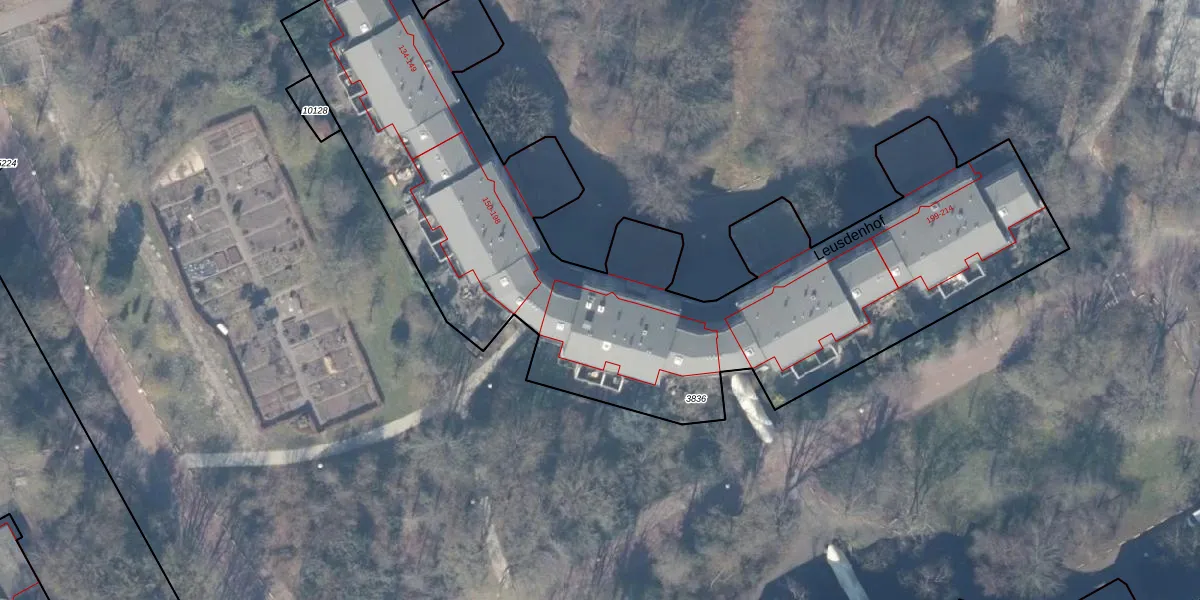 Het perceel waarop Leusdenhof 170 staat heeft een oppervlakte van 3695 m². Dit is een zeer groot perceel. De perceeloppervlakte wordt geregistreerd door het Kadaster. Gedetailleerde informatie over de maten van dit perceel kunt u vinden in het rapport Kadastrale kaart met maatvoering van Leusdenhof 170.