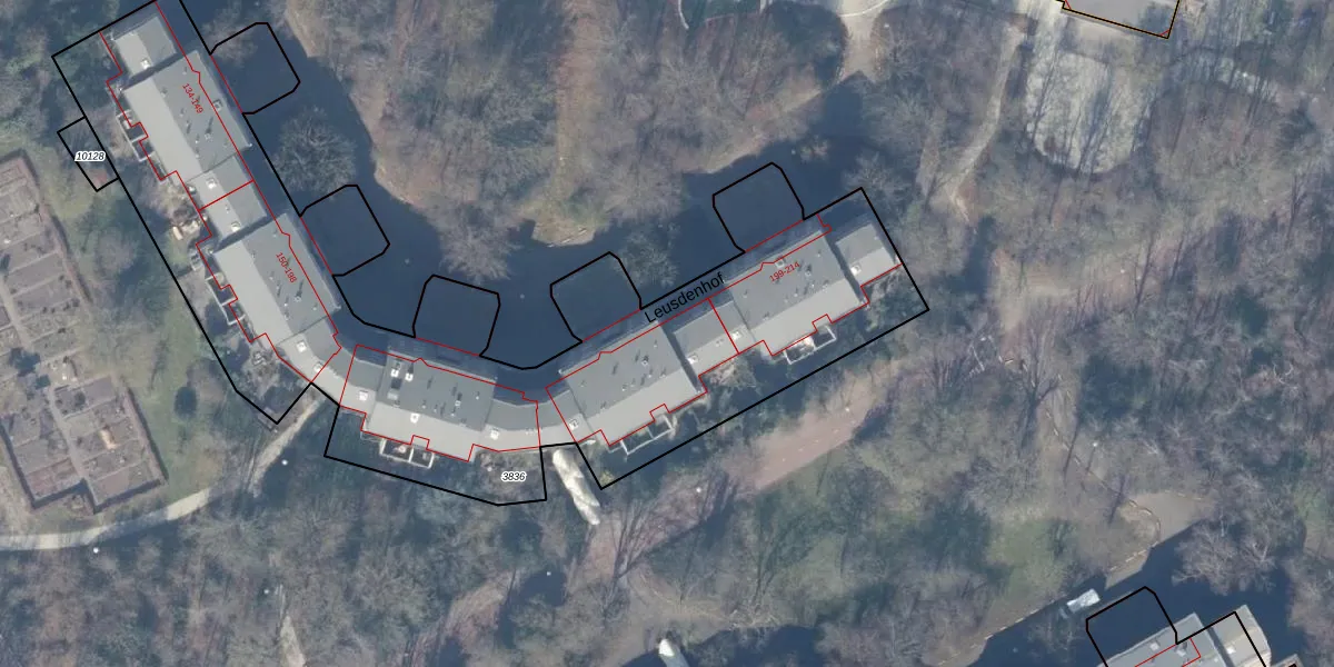 Het perceel waarop Leusdenhof 194 staat heeft een oppervlakte van 3695 m². Dit is een zeer groot perceel. De perceeloppervlakte wordt geregistreerd door het Kadaster. Gedetailleerde informatie over de maten van dit perceel kunt u vinden in het rapport Kadastrale kaart met maatvoering van Leusdenhof 194.