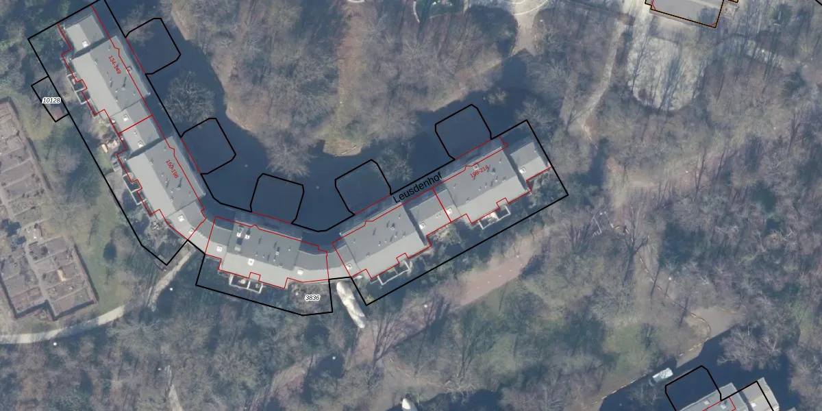 Het perceel waarop Leusdenhof 195 staat heeft een oppervlakte van 3695 m². Dit is een zeer groot perceel. De perceeloppervlakte wordt geregistreerd door het Kadaster. Gedetailleerde informatie over de maten van dit perceel kunt u vinden in het rapport Kadastrale kaart met maatvoering van Leusdenhof 195.