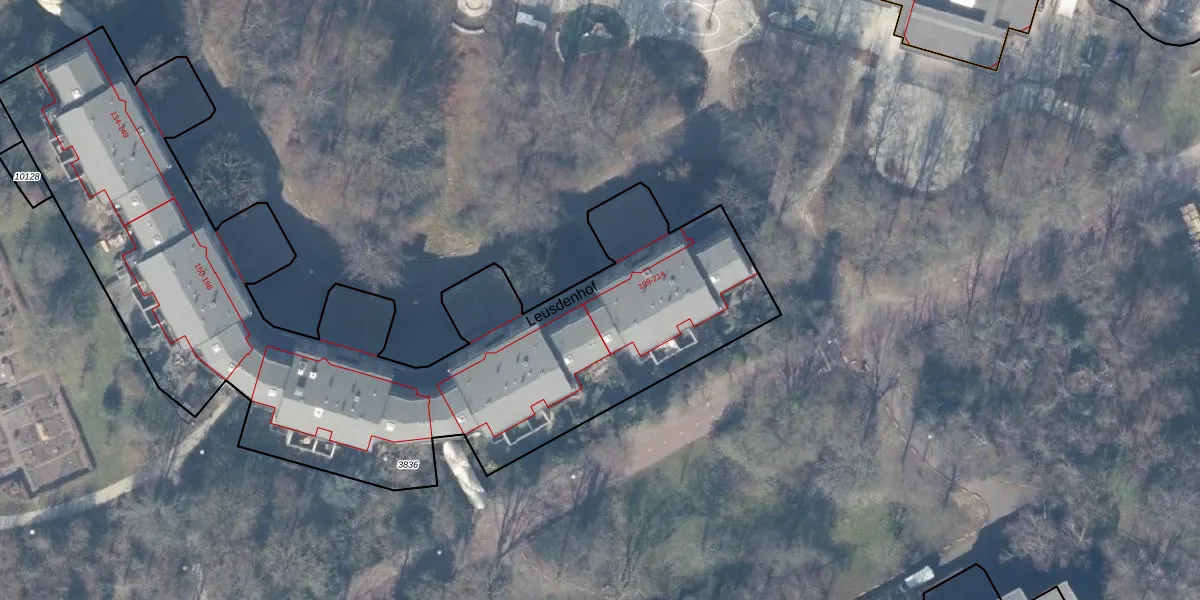 Het perceel waarop Leusdenhof 199 staat heeft een oppervlakte van 3695 m². Dit is een zeer groot perceel. De perceeloppervlakte wordt geregistreerd door het Kadaster. Gedetailleerde informatie over de maten van dit perceel kunt u vinden in het rapport Kadastrale kaart met maatvoering van Leusdenhof 199.