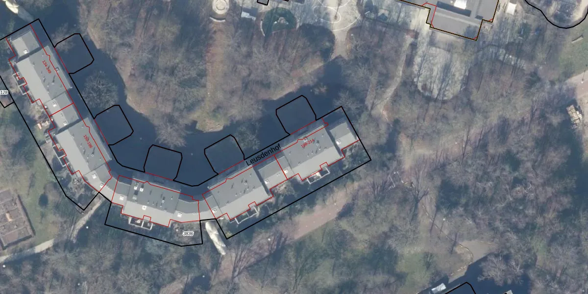 Het perceel waarop Leusdenhof 202 staat heeft een oppervlakte van 3695 m². Dit is een zeer groot perceel. De perceeloppervlakte wordt geregistreerd door het Kadaster. Gedetailleerde informatie over de maten van dit perceel kunt u vinden in het rapport Kadastrale kaart met maatvoering van Leusdenhof 202.