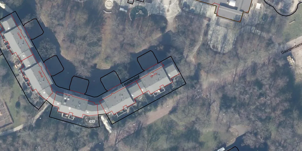 Het perceel waarop Leusdenhof 204 staat heeft een oppervlakte van 3695 m². Dit is een zeer groot perceel. De perceeloppervlakte wordt geregistreerd door het Kadaster. Gedetailleerde informatie over de maten van dit perceel kunt u vinden in het rapport Kadastrale kaart met maatvoering van Leusdenhof 204.