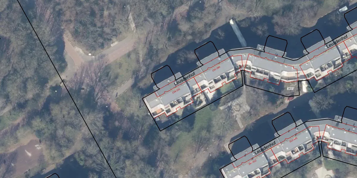 Leusdenhof 226 is gelegen op kadastraal perceel WPK02L3837. Deze kadastrale aanduiding is uniek en wordt gebruikt door het Kadaster om eigendomsrechten en andere zakelijke rechten vast te leggen. Het perceel maakt onderdeel uit van de kadastrale gemeente Weesperkarspel.