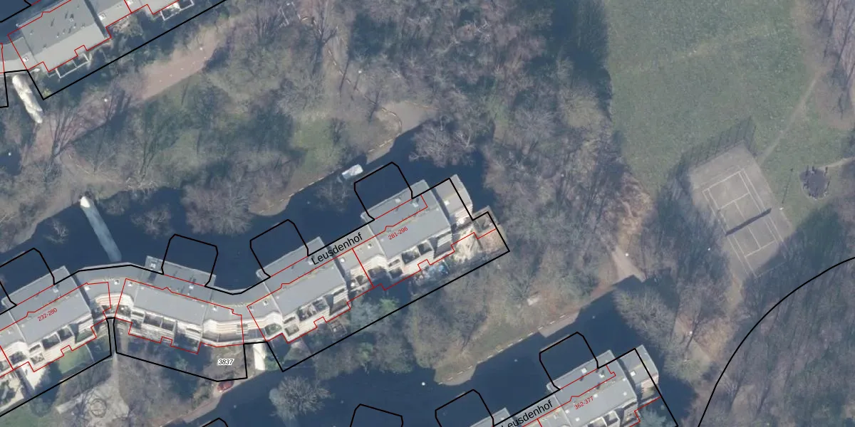 Het perceel waarop Leusdenhof 292 staat heeft een oppervlakte van 3730 m². Dit is een zeer groot perceel. De perceeloppervlakte wordt geregistreerd door het Kadaster. Gedetailleerde informatie over de maten van dit perceel kunt u vinden in het rapport Kadastrale kaart met maatvoering van Leusdenhof 292.