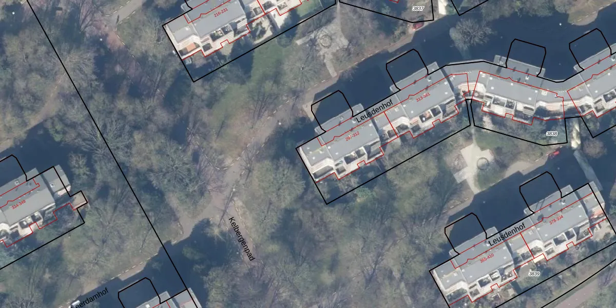 Leusdenhof 297 is gelegen op kadastraal perceel WPK02L3838. Deze kadastrale aanduiding is uniek en wordt gebruikt door het Kadaster om eigendomsrechten en andere zakelijke rechten vast te leggen. Het perceel maakt onderdeel uit van de kadastrale gemeente Weesperkarspel.