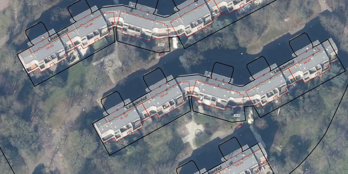 Leusdenhof 326 is gelegen op kadastraal perceel WPK02L3838. Deze kadastrale aanduiding is uniek en wordt gebruikt door het Kadaster om eigendomsrechten en andere zakelijke rechten vast te leggen. Het perceel maakt onderdeel uit van de kadastrale gemeente Weesperkarspel.