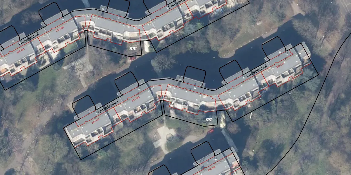 Leusdenhof 331 is gelegen op kadastraal perceel WPK02L3838. Deze kadastrale aanduiding is uniek en wordt gebruikt door het Kadaster om eigendomsrechten en andere zakelijke rechten vast te leggen. Het perceel maakt onderdeel uit van de kadastrale gemeente Weesperkarspel.
