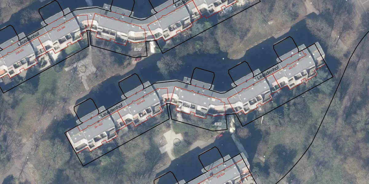 Leusdenhof 332 is gelegen op kadastraal perceel WPK02L3838. Deze kadastrale aanduiding is uniek en wordt gebruikt door het Kadaster om eigendomsrechten en andere zakelijke rechten vast te leggen. Het perceel maakt onderdeel uit van de kadastrale gemeente Weesperkarspel.
