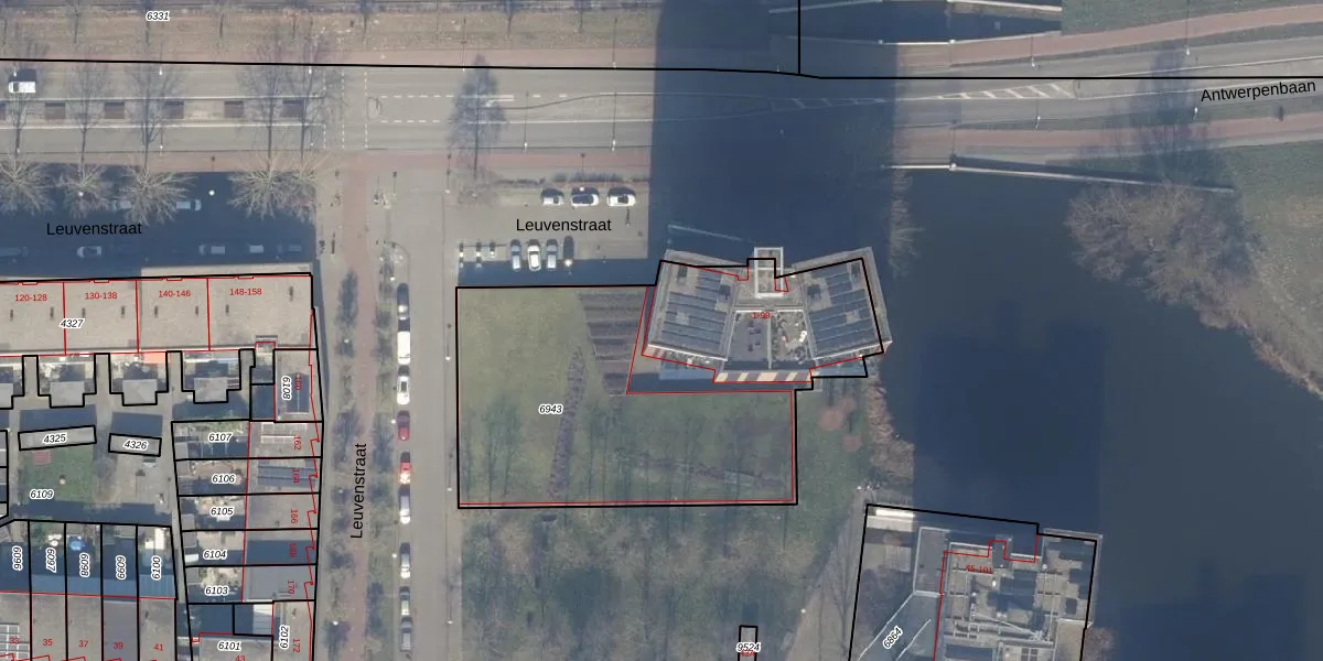 Het perceel waarop Leuvenstraat 1 staat heeft een oppervlakte van 1967 m². Dit is een zeer groot perceel. De perceeloppervlakte wordt geregistreerd door het Kadaster. Gedetailleerde informatie over de maten van dit perceel kunt u vinden in het rapport Kadastrale kaart met maatvoering van Leuvenstraat 1.