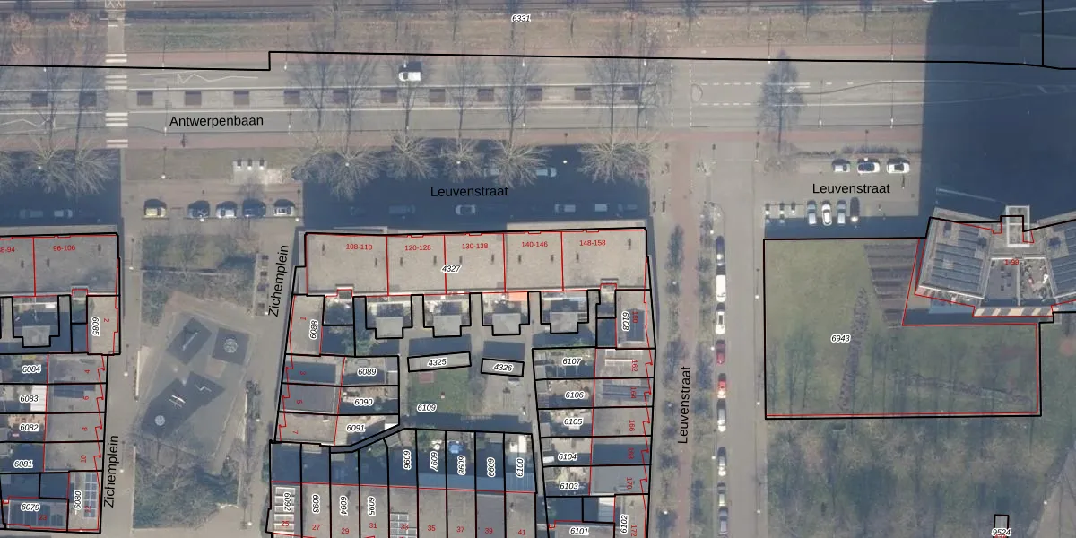 Het perceel waarop Leuvenstraat 144 staat heeft een oppervlakte van 1095 m². Dit is een zeer groot perceel. De perceeloppervlakte wordt geregistreerd door het Kadaster. Gedetailleerde informatie over de maten van dit perceel kunt u vinden in het rapport Kadastrale kaart met maatvoering van Leuvenstraat 144.