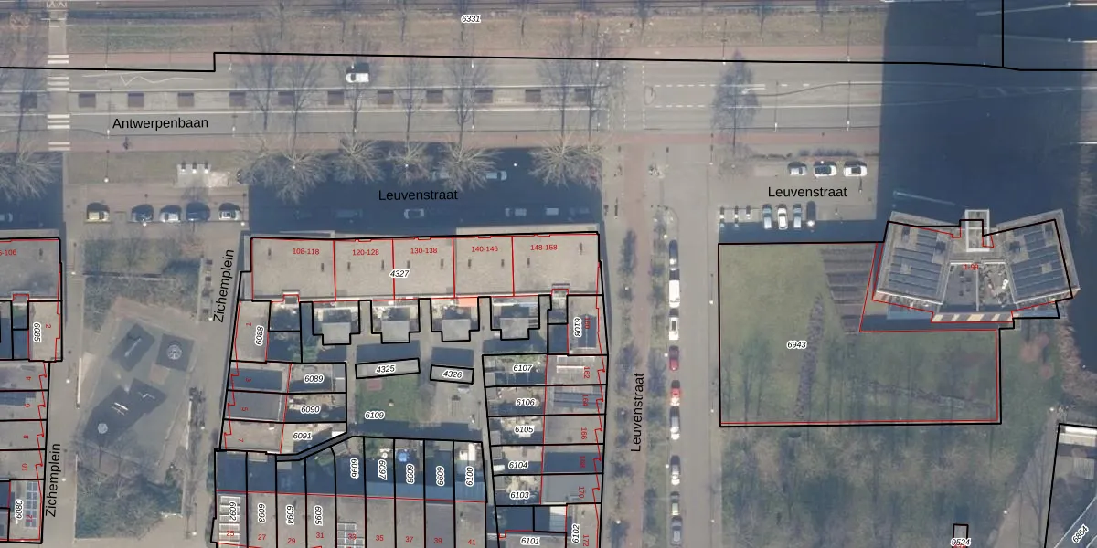 Het perceel waarop Leuvenstraat 156 staat heeft een oppervlakte van 1095 m². Dit is een zeer groot perceel. De perceeloppervlakte wordt geregistreerd door het Kadaster. Gedetailleerde informatie over de maten van dit perceel kunt u vinden in het rapport Kadastrale kaart met maatvoering van Leuvenstraat 156.