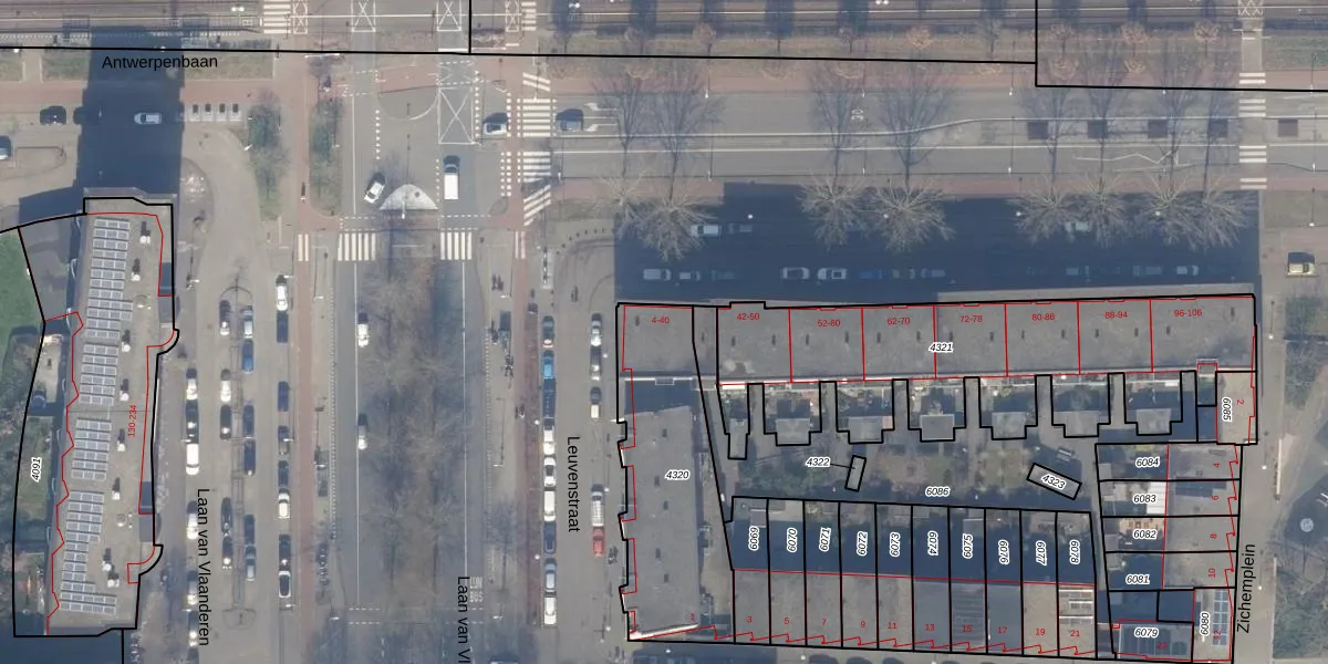 Het perceel waarop Leuvenstraat 36 staat heeft een oppervlakte van 728 m². Dit is een groot perceel. De perceeloppervlakte wordt geregistreerd door het Kadaster. Gedetailleerde informatie over de maten van dit perceel kunt u vinden in het rapport Kadastrale kaart met maatvoering van Leuvenstraat 36.