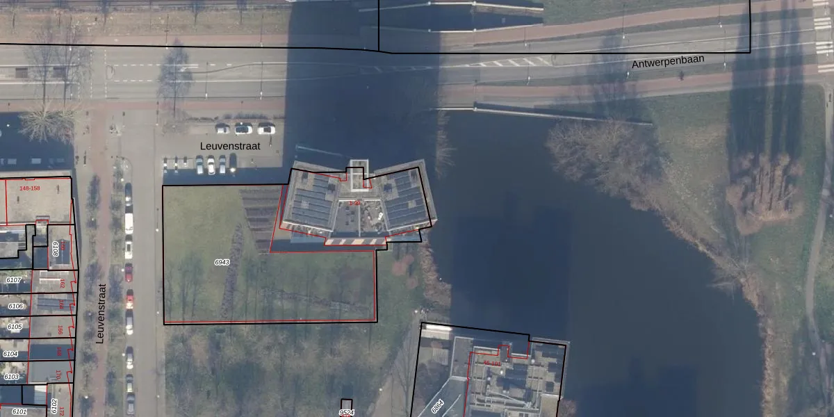 Het perceel waarop Leuvenstraat 39 staat heeft een oppervlakte van 1967 m². Dit is een zeer groot perceel. De perceeloppervlakte wordt geregistreerd door het Kadaster. Gedetailleerde informatie over de maten van dit perceel kunt u vinden in het rapport Kadastrale kaart met maatvoering van Leuvenstraat 39.