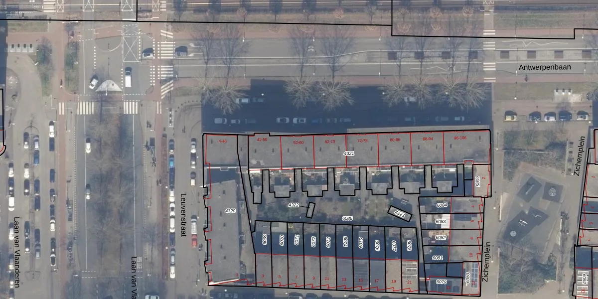 Het perceel waarop Leuvenstraat 54 staat heeft een oppervlakte van 1373 m². Dit is een zeer groot perceel. De perceeloppervlakte wordt geregistreerd door het Kadaster. Gedetailleerde informatie over de maten van dit perceel kunt u vinden in het rapport Kadastrale kaart met maatvoering van Leuvenstraat 54.