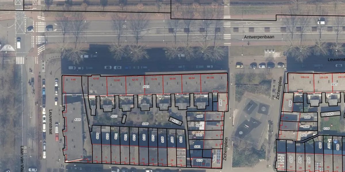 Het perceel waarop Leuvenstraat 84 staat heeft een oppervlakte van 1373 m². Dit is een zeer groot perceel. De perceeloppervlakte wordt geregistreerd door het Kadaster. Gedetailleerde informatie over de maten van dit perceel kunt u vinden in het rapport Kadastrale kaart met maatvoering van Leuvenstraat 84.