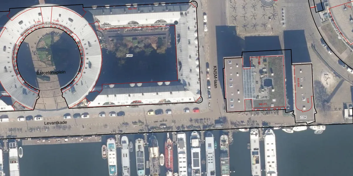 Levantkade 257 is gelegen op kadastraal perceel ASD02A7489. Deze kadastrale aanduiding is uniek en wordt gebruikt door het Kadaster om eigendomsrechten en andere zakelijke rechten vast te leggen. Het perceel maakt onderdeel uit van de kadastrale gemeente Amsterdam.