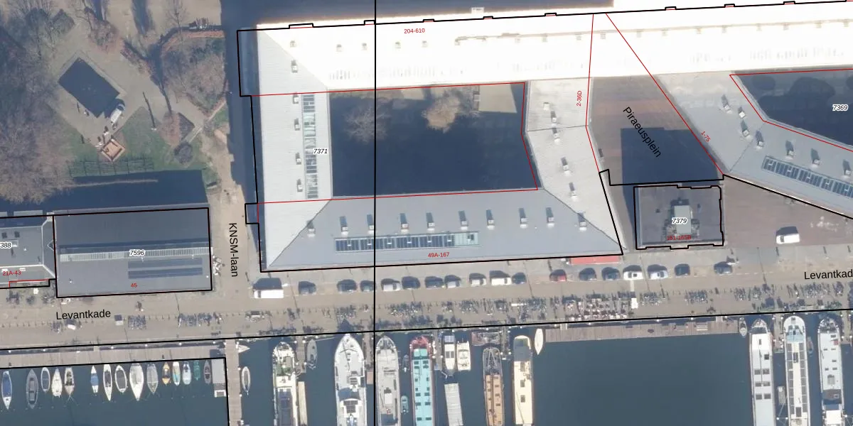 Het perceel waarop Levantkade 95 staat heeft een oppervlakte van 7168 m². Dit is een zeer groot perceel. De perceeloppervlakte wordt geregistreerd door het Kadaster. Gedetailleerde informatie over de maten van dit perceel kunt u vinden in het rapport Kadastrale kaart met maatvoering van Levantkade 95.