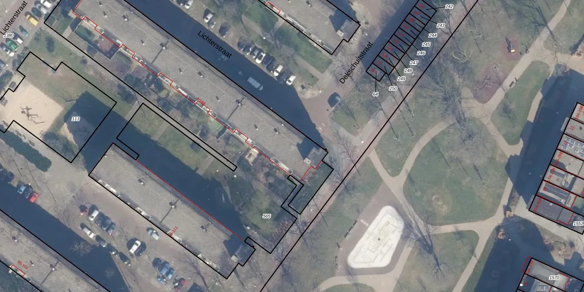 Het perceel waarop Lichterstraat 102 staat heeft een oppervlakte van 4375 m². Dit is een zeer groot perceel. De perceeloppervlakte wordt geregistreerd door het Kadaster. Gedetailleerde informatie over de maten van dit perceel kunt u vinden in het rapport Kadastrale kaart met maatvoering van Lichterstraat 102.