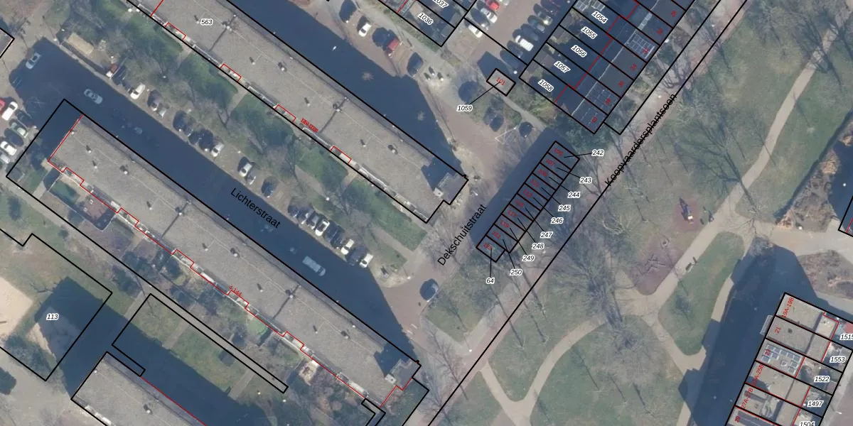 Het perceel waarop Lichterstraat 103 staat heeft een oppervlakte van 2283 m². Dit is een zeer groot perceel. De perceeloppervlakte wordt geregistreerd door het Kadaster. Gedetailleerde informatie over de maten van dit perceel kunt u vinden in het rapport Kadastrale kaart met maatvoering van Lichterstraat 103.