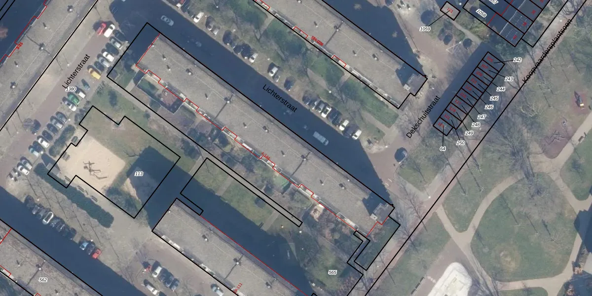 Het perceel waarop Lichterstraat 38 staat heeft een oppervlakte van 4375 m². Dit is een zeer groot perceel. De perceeloppervlakte wordt geregistreerd door het Kadaster. Gedetailleerde informatie over de maten van dit perceel kunt u vinden in het rapport Kadastrale kaart met maatvoering van Lichterstraat 38.