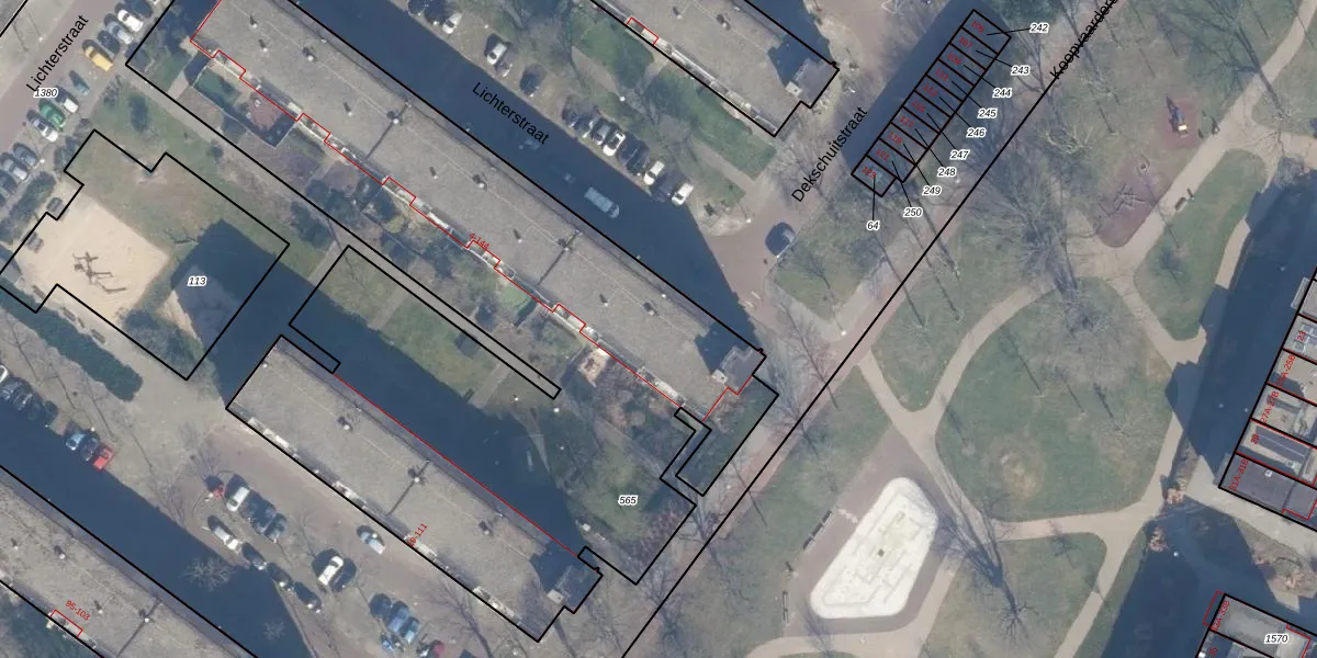 Het perceel waarop Lichterstraat 66 staat heeft een oppervlakte van 4375 m². Dit is een zeer groot perceel. De perceeloppervlakte wordt geregistreerd door het Kadaster. Gedetailleerde informatie over de maten van dit perceel kunt u vinden in het rapport Kadastrale kaart met maatvoering van Lichterstraat 66.
