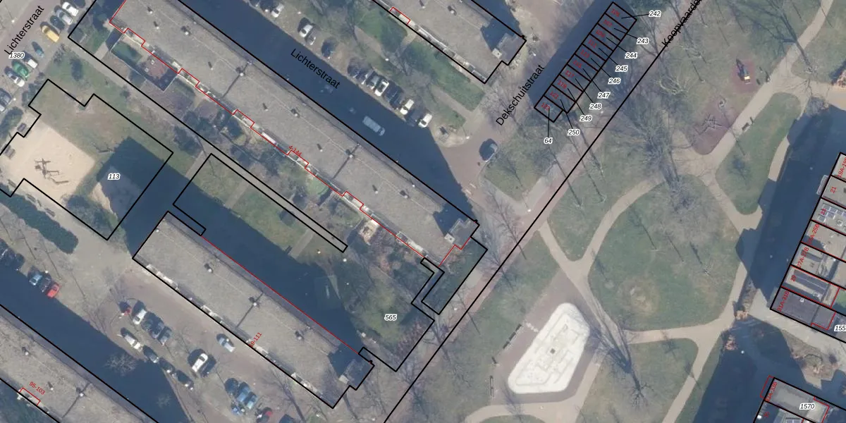 Het perceel waarop Lichterstraat 92 staat heeft een oppervlakte van 4375 m². Dit is een zeer groot perceel. De perceeloppervlakte wordt geregistreerd door het Kadaster. Gedetailleerde informatie over de maten van dit perceel kunt u vinden in het rapport Kadastrale kaart met maatvoering van Lichterstraat 92.