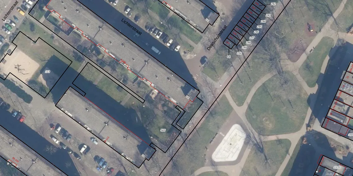 Het perceel waarop Lichterstraat 94 staat heeft een oppervlakte van 4375 m². Dit is een zeer groot perceel. De perceeloppervlakte wordt geregistreerd door het Kadaster. Gedetailleerde informatie over de maten van dit perceel kunt u vinden in het rapport Kadastrale kaart met maatvoering van Lichterstraat 94.