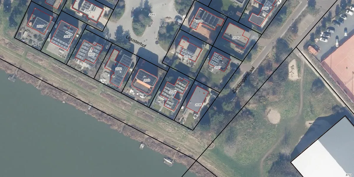 Gebruik de zoekbalk of klik op een perceel voor informatie over de adressen binnen dit perceel.