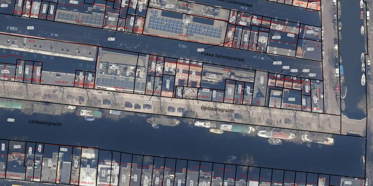 Lijnbaansgracht 377 is gelegen op kadastraal perceel ASD06I9192. Deze kadastrale aanduiding is uniek en wordt gebruikt door het Kadaster om eigendomsrechten en andere zakelijke rechten vast te leggen. Het perceel maakt onderdeel uit van de kadastrale gemeente Amsterdam.