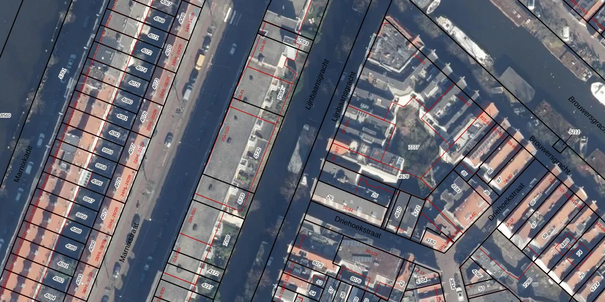 Lijnbaansgracht 4 is gelegen op kadastraal perceel ASD08L5755. Deze kadastrale aanduiding is uniek en wordt gebruikt door het Kadaster om eigendomsrechten en andere zakelijke rechten vast te leggen. Het perceel maakt onderdeel uit van de kadastrale gemeente Amsterdam.