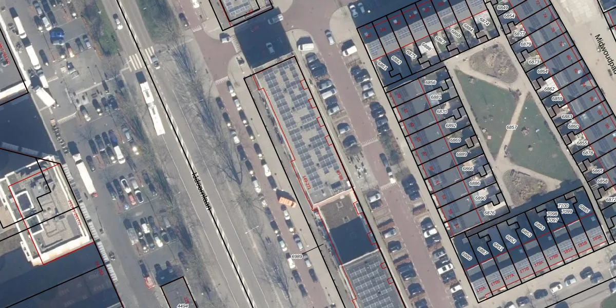 Het perceel waarop het adres ligt is ASD31-AL-6989. De afkorting 'ASD31' staat voor kadastrale gemeente Amsterdam. De oppervlakte van het perceel is 1760 m². Dat is groter dan gemiddeld in Amsterdam, waar de gemiddelde perceeloppervlakte op 1159,38 m² ligt. De grootste perceeloppervlakte in de kadastrale gemeente is 35,6 ha. De kleinste oppervlakte bedraagt 0 m². Op het perceel liggen in totaal 101 adressen. In de Basisregistratie Kadaster (BRK) werden de grenzen van het perceel geregistreerd op 04-11-2022.