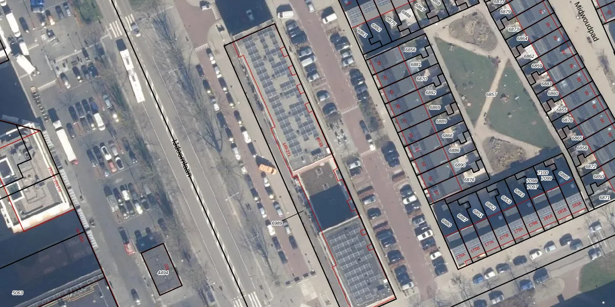 Het perceel waarop het adres ligt is ASD31-AL-6989. De afkorting 'ASD31' staat voor kadastrale gemeente Amsterdam. De oppervlakte van het perceel is 1760 m². Dat is groter dan gemiddeld in Amsterdam, waar de gemiddelde perceeloppervlakte op 1159,38 m² ligt. De grootste perceeloppervlakte in de kadastrale gemeente is 35,6 ha. De kleinste oppervlakte bedraagt 0 m². Er zijn 101 adressen aanwezig op het perceel. De huidige grenzen van het perceel zijn digitaal in de Basisregistratie Kadaster (BRK) geregistreerd op 04-11-2022.
