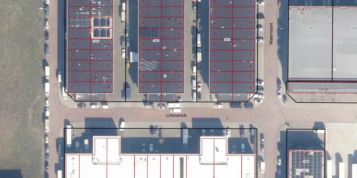 Het perceel waarop Limmerick 44 staat heeft een oppervlakte van 2886 m². Dit is een zeer groot perceel. De perceeloppervlakte wordt geregistreerd door het Kadaster. Gedetailleerde informatie over de maten van dit perceel kunt u vinden in het rapport Kadastrale kaart met maatvoering van Limmerick 44.