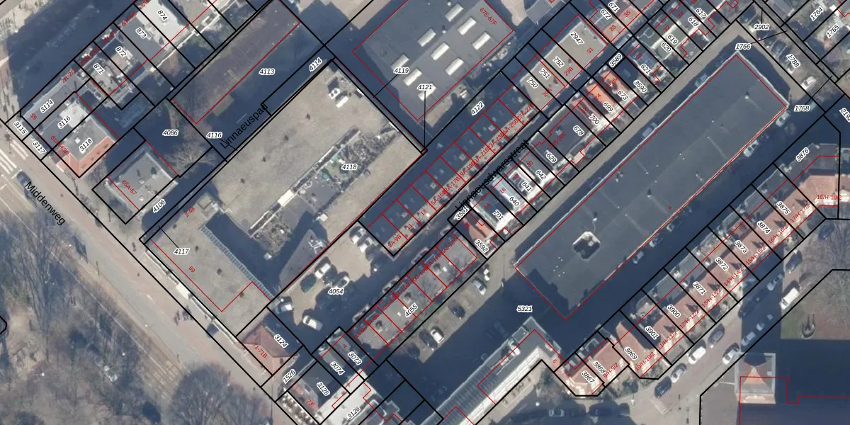 Het perceel waarop Linnaeusdwarsstraat 13 staat heeft een oppervlakte van 624 m². Dit is een groot perceel. De perceeloppervlakte wordt geregistreerd door het Kadaster. Gedetailleerde informatie over de maten van dit perceel kunt u vinden in het rapport Kadastrale kaart met maatvoering van Linnaeusdwarsstraat 13.