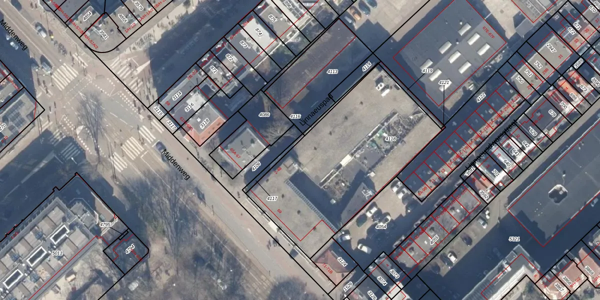 Het adres is gelegen op perceel 4118 in de sectie B en de kadastrale gemeente Watergraafsmeer. De kadastrale aanduiding is aldus WTG02-B-4118. De oppervlakte van het perceel is 1887 m². Dat is groter dan gemiddeld in Watergraafsmeer, waar de gemiddelde perceeloppervlakte op 1562,74 m² ligt. De grootste perceeloppervlakte in de kadastrale gemeente is 32,7 ha. De kleinste oppervlakte bedraagt 0 m². Op het perceel liggen in totaal 25 adressen. De laatste wijziging in het de Basisregistratie Kadaster (BRK) was op 18-09-2006.