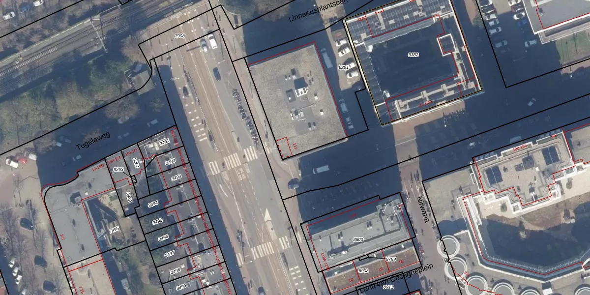 Het perceel waarop Linnaeusstraat 111 staat heeft een oppervlakte van 1250 m². Dit is een zeer groot perceel. De perceeloppervlakte wordt geregistreerd door het Kadaster. Gedetailleerde informatie over de maten van dit perceel kunt u vinden in het rapport Kadastrale kaart met maatvoering van Linnaeusstraat 111.