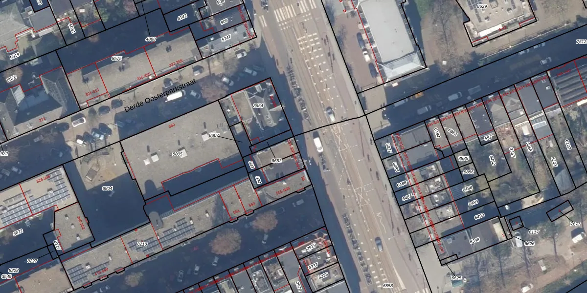 Het perceel waarop het adres ligt is ASD19-W-933. De afkorting 'ASD19' staat voor kadastrale gemeente Amsterdam. Het perceel is kleiner dan gemiddeld in Amsterdam. Het perceel is 110 m² groot, terwijl het gemiddelde ligt op 1563,61 m². Het kleinste perceel in de kadastrale gemeente is 0 m² groot. De grootste perceeloppervlakte is 17,9 ha. Er zijn 6 adressen aanwezig op het perceel. De laatste wijziging in het de Basisregistratie Kadaster (BRK) was op 01-11-2006.