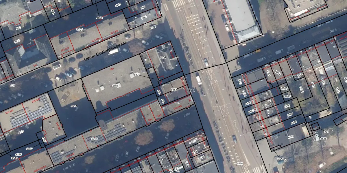 Het adres is gelegen op perceel 933 in de sectie W en de kadastrale gemeente Amsterdam. De kadastrale aanduiding is aldus ASD19-W-933. De gemiddelde perceelgrootte in Amsterdam is 1563,61 m². Dit perceel is kleiner: de perceeloppervlakte bedraagt 110 m². Het kleinste perceel in de kadastrale gemeente is 0 m² groot. De grootste perceeloppervlakte is 17,9 ha. Op het perceel liggen in totaal 6 adressen. In de Basisregistratie Kadaster (BRK) werden de grenzen van het perceel geregistreerd op 01-11-2006.