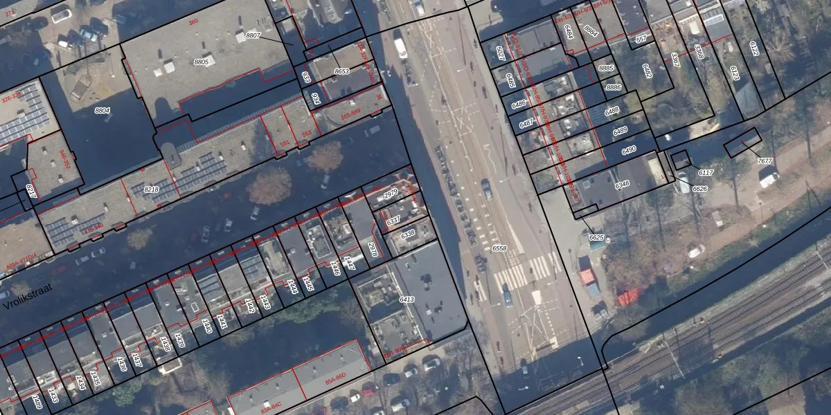 Het adres is gelegen op perceel 6337 in de sectie W en de kadastrale gemeente Amsterdam. De kadastrale aanduiding is aldus ASD19-W-6337. Het perceel is 81 m² groot. Dat is kleiner dan de gemiddelde perceeloppervlakte in Amsterdam, dat op 1563,61 m² ligt. Het kleinste perceel in de kadastrale gemeente is 0 m² groot. De grootste perceeloppervlakte is 17,9 ha. Op het perceel liggen in totaal 5 adressen. De huidige grenzen van het perceel zijn digitaal in de Basisregistratie Kadaster (BRK) geregistreerd op 01-11-2006.