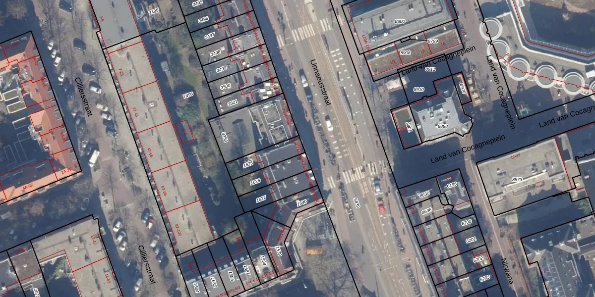 Het adres ligt op het perceel ASD19-W-1625, dat zich in de kadastrale gemeente Amsterdam bevindt. Het perceel is 162 m² groot. Dat is kleiner dan de gemiddelde perceeloppervlakte in Amsterdam, dat op 1563,05 m² ligt. De grootste perceeloppervlakte in de kadastrale gemeente is 17,9 ha. De kleinste oppervlakte bedraagt 0 m². Op het perceel zijn 4 adressen aanwezig. In de Basisregistratie Kadaster (BRK) werden de grenzen van het perceel geregistreerd op 01-11-2006.
