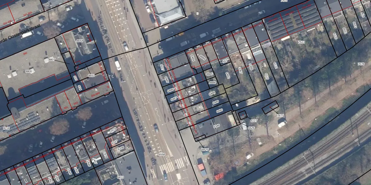 Het adres ligt op het perceel ASD19-W-6487, dat zich in de kadastrale gemeente Amsterdam bevindt. Het perceel is 119 m² groot. Dat is kleiner dan de gemiddelde perceeloppervlakte in Amsterdam, dat op 1563,05 m² ligt. Het grootste perceel in de kadastrale gemeente is 17,9 ha. Het kleinste perceel heeft een oppervlakte van 0 m². Op het perceel zijn 3 adressen aanwezig. In de Basisregistratie Kadaster (BRK) werden de grenzen van het perceel geregistreerd op 29-11-2006.