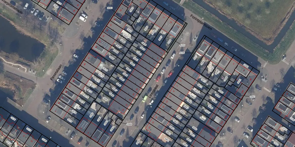Gebruik de zoekbalk of klik op een perceel voor informatie over de adressen binnen dit perceel.