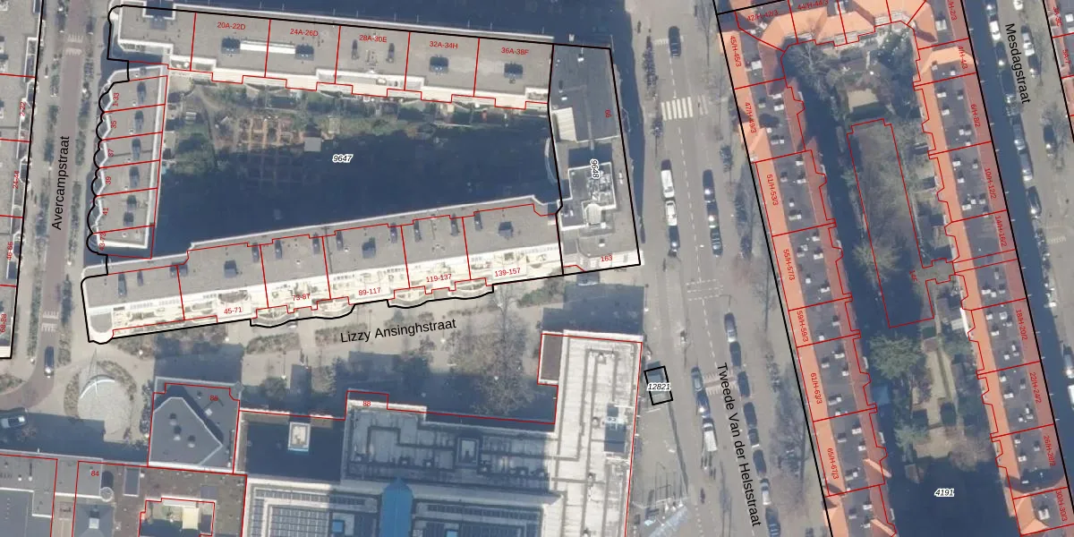 Lizzy Ansinghstraat 157 is gelegen op kadastraal perceel ASD18V9647. Deze kadastrale aanduiding is uniek en wordt gebruikt door het Kadaster om eigendomsrechten en andere zakelijke rechten vast te leggen. Het perceel maakt onderdeel uit van de kadastrale gemeente Amsterdam.