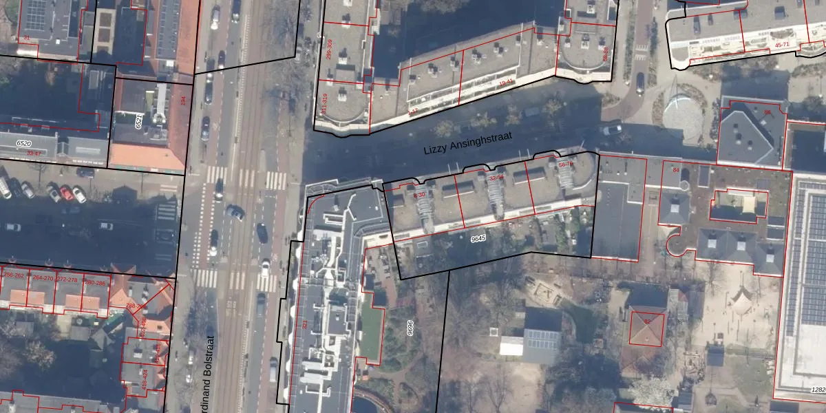 Het perceel waarop Lizzy Ansinghstraat 30 staat heeft een oppervlakte van 1164 m². Dit is een zeer groot perceel. De perceeloppervlakte wordt geregistreerd door het Kadaster. Gedetailleerde informatie over de maten van dit perceel kunt u vinden in het rapport Kadastrale kaart met maatvoering van Lizzy Ansinghstraat 30.