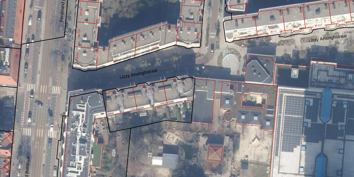 Lizzy Ansinghstraat 62 is gelegen op kadastraal perceel ASD18V9645. Deze kadastrale aanduiding is uniek en wordt gebruikt door het Kadaster om eigendomsrechten en andere zakelijke rechten vast te leggen. Het perceel maakt onderdeel uit van de kadastrale gemeente Amsterdam.